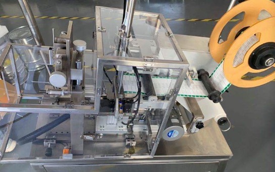 The O and U shape labels machine equipment production line from automatic feeding cap, stick labeling to collecting machine work for Medicine indus...